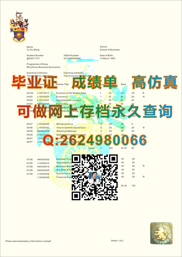 英国索尔福德大学成绩单样本