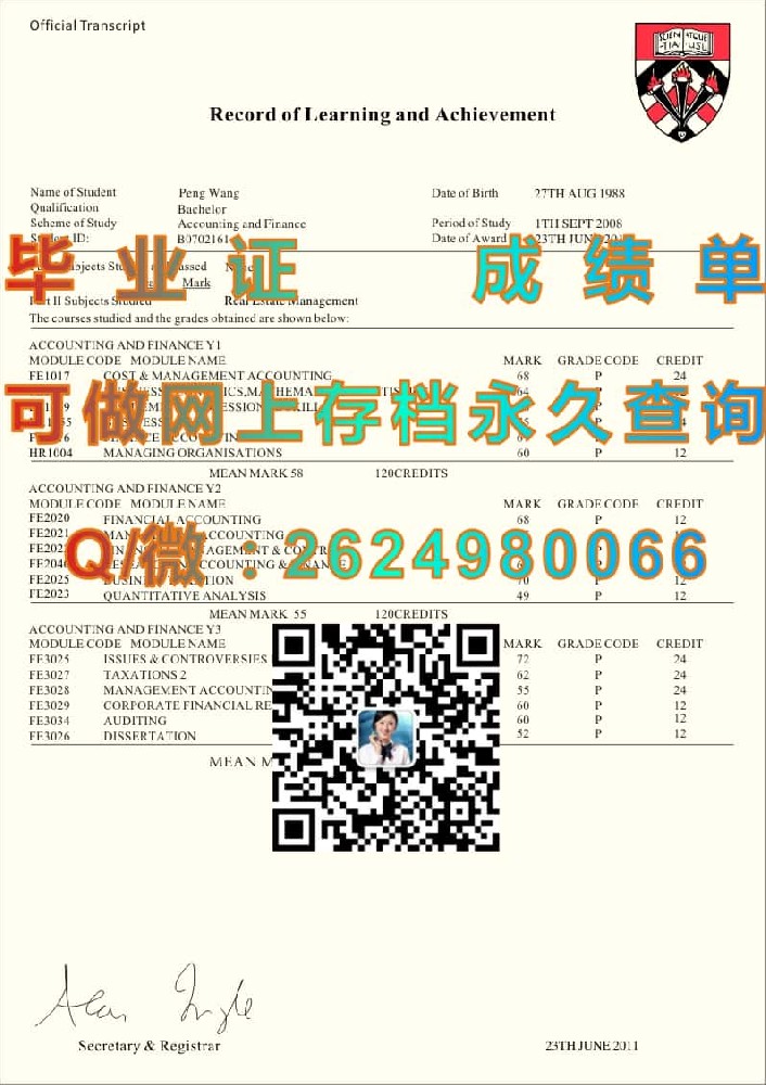 - 学位名称:根据所学专业,如理学学士(BSc)、文学硕士(MA)等