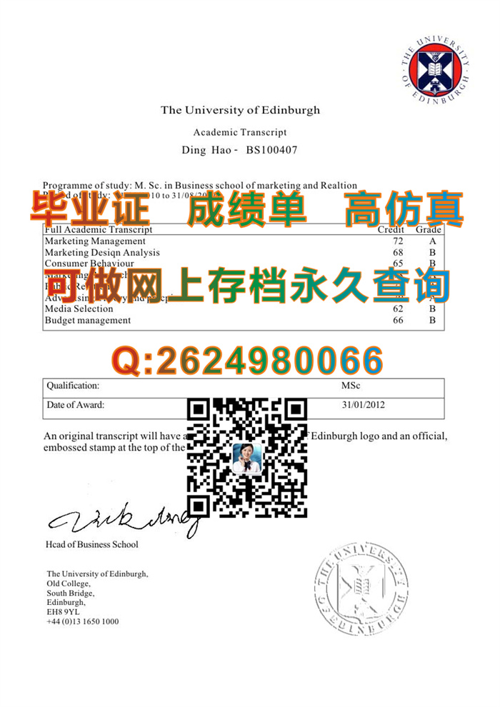 爱丁堡大学毕业证、文凭、成绩单、学位证书制作|The University of Edinburgh diploma|英国Edin毕业证PDF电子版