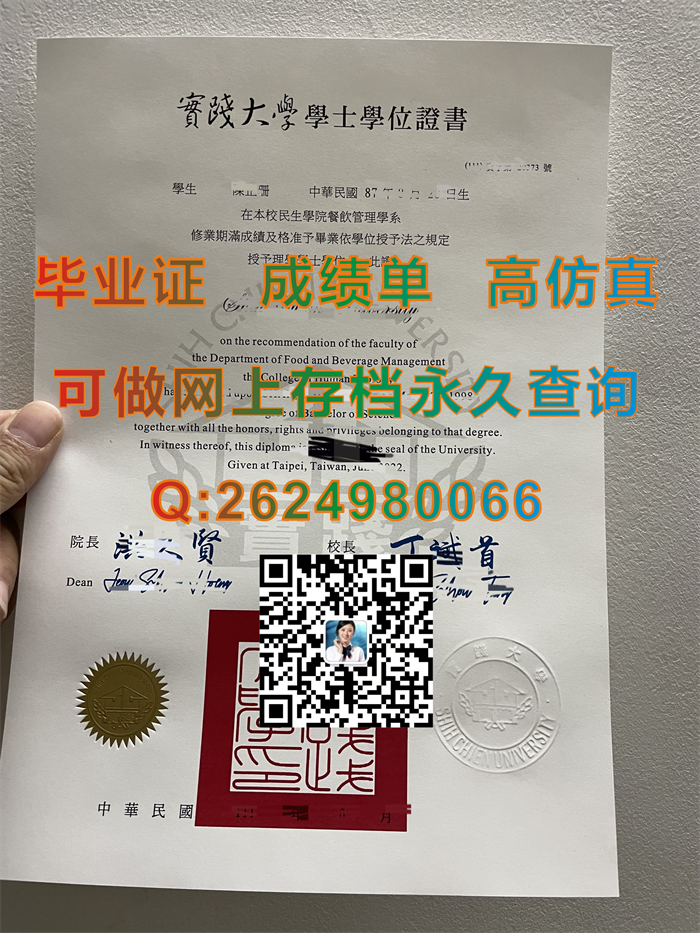 台湾实践大学学士学位证书模版实拍|Shih Chien University diploma|台湾大学文凭图片