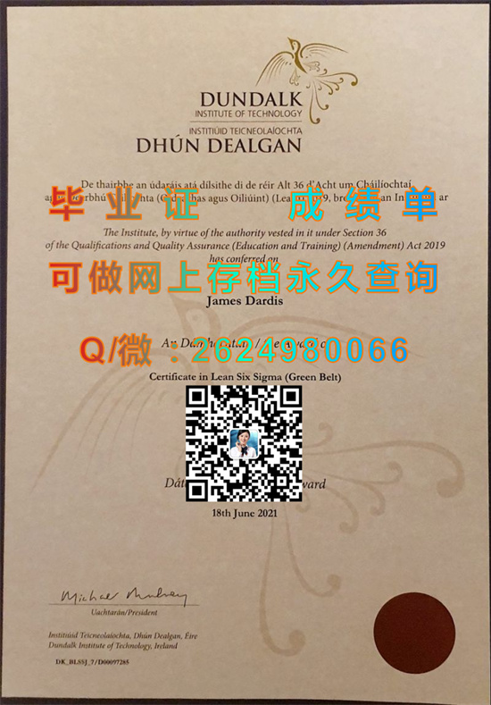 敦达克理工学院毕业证图片样本|Dundalk Institute of Technology diploma|(DkIT)(定制国外大学毕业证、文凭、成绩单、留信网认证入网、offer)