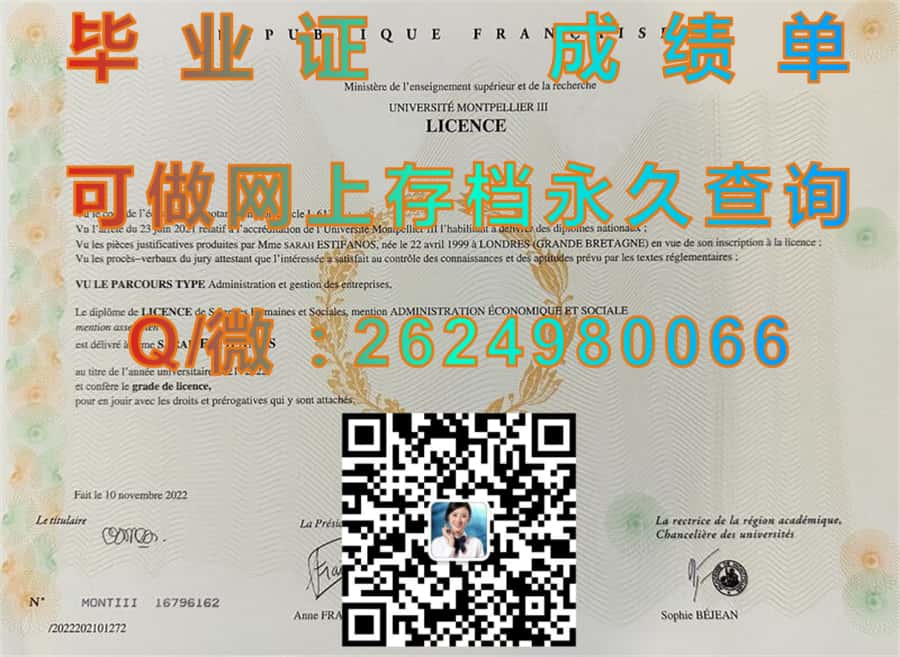 蒙比利埃三大的学位证书以精美的设计、严谨的内容和权威的认证,成为许多学子梦寐以求的荣誉证书。以下是蒙比利埃三大毕业证书的模版参考: