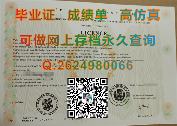 法国南特大学毕业证、文凭、成绩单、学位证|法国文凭定制|法国毕业证购买|法国学历样本|University of Nantes文凭