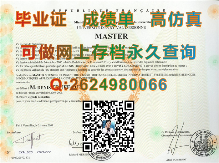 原版埃夫里大学毕业证书、成绩单、文凭、学历认证、留信网认证永久可查|Université d'Évry diploma