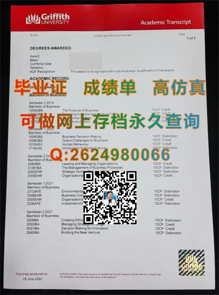 澳洲格里菲斯大学毕业证书文凭成绩单样本实拍|Griffith University diploma|澳大利亚大学学历文凭图片