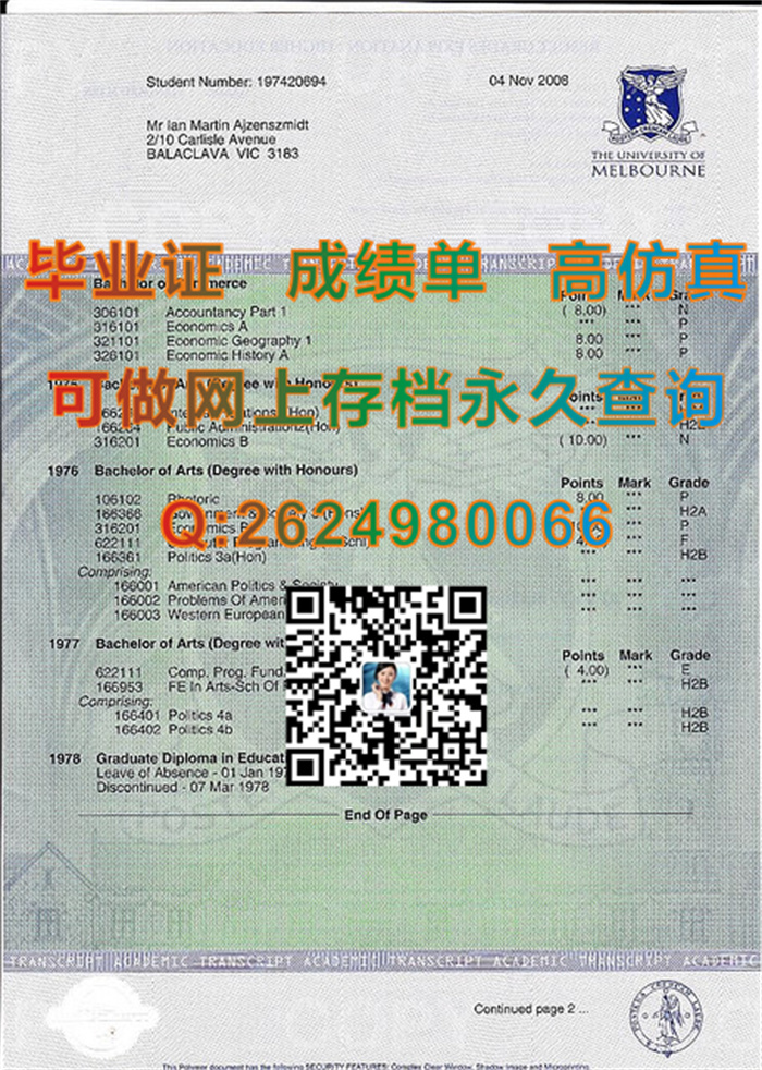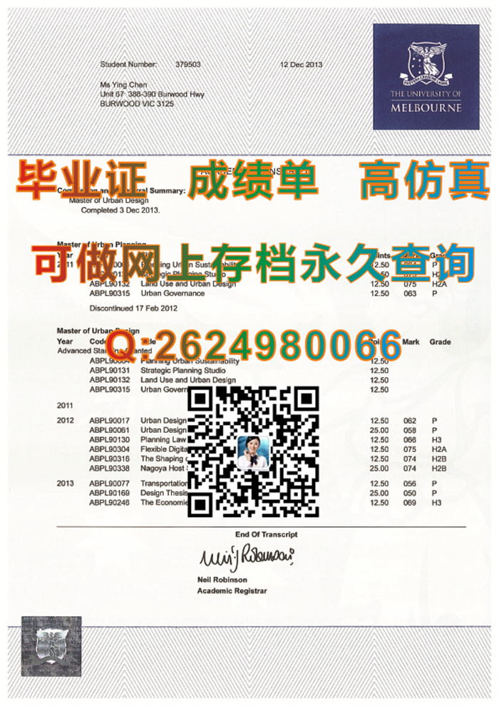 墨尔本大学成绩单样本