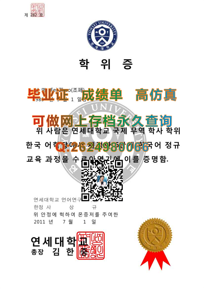 韩国延世大学毕业证PDF电子版图片|韩国延世大学毕业证文凭学位证外壳定制|韩国文凭办理|真实留信网认证入网