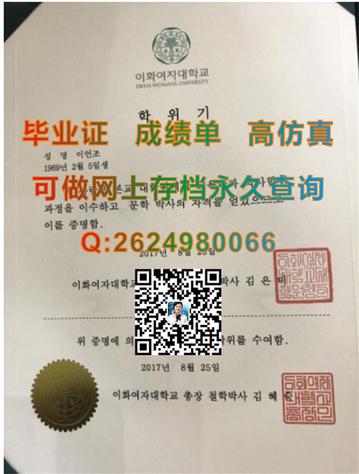 梨花女子大学毕业证文凭成绩单学位证外壳定制|韩国毕业证补办|Ewha Womans University文凭|国外学历认证书