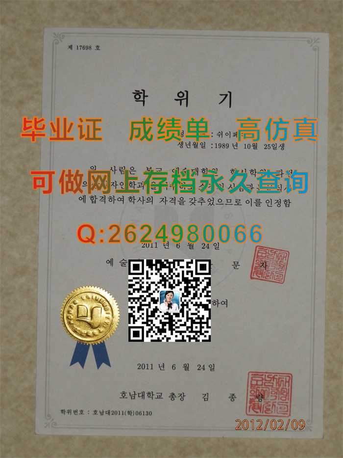 韩国湖南大学毕业证、文凭、成绩单、学历认证书代办|Honam University diploma|韩国文凭定制|韩国毕业证样本