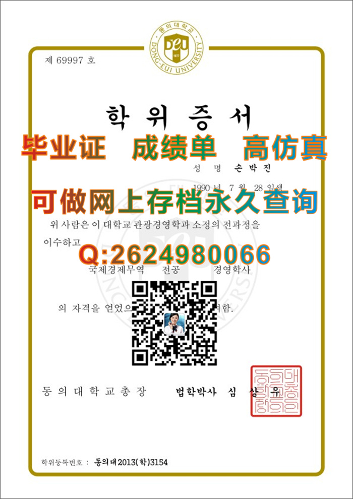 韩国东义大学毕业证、文凭、成绩单、学位证书外壳制作|DONG-EUI UNIVERSITY diploma|韩国大学文凭样本
