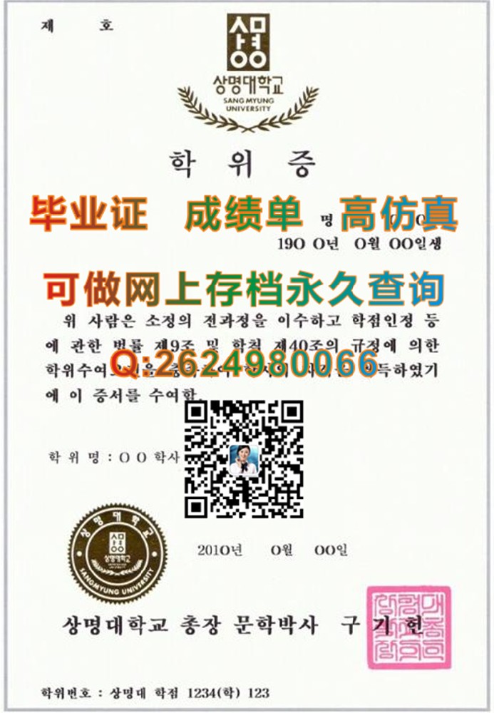 韩国祥明大学毕业证PDF电子版样本|상명대학교成绩单|Sangmyung University文凭|韩国SMU文凭购买